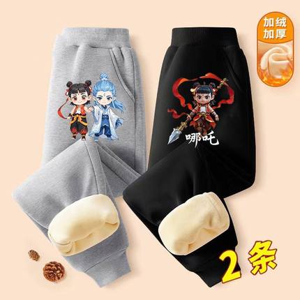 男童哪吒加绒中厚裤子儿童冬季保暖裤中大童2025新款休闲运动长裤
