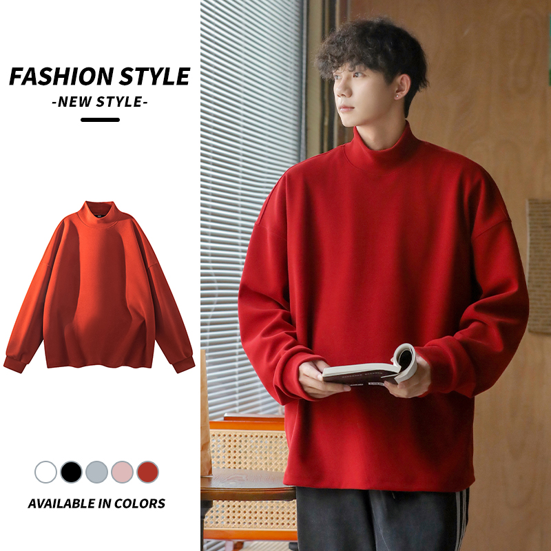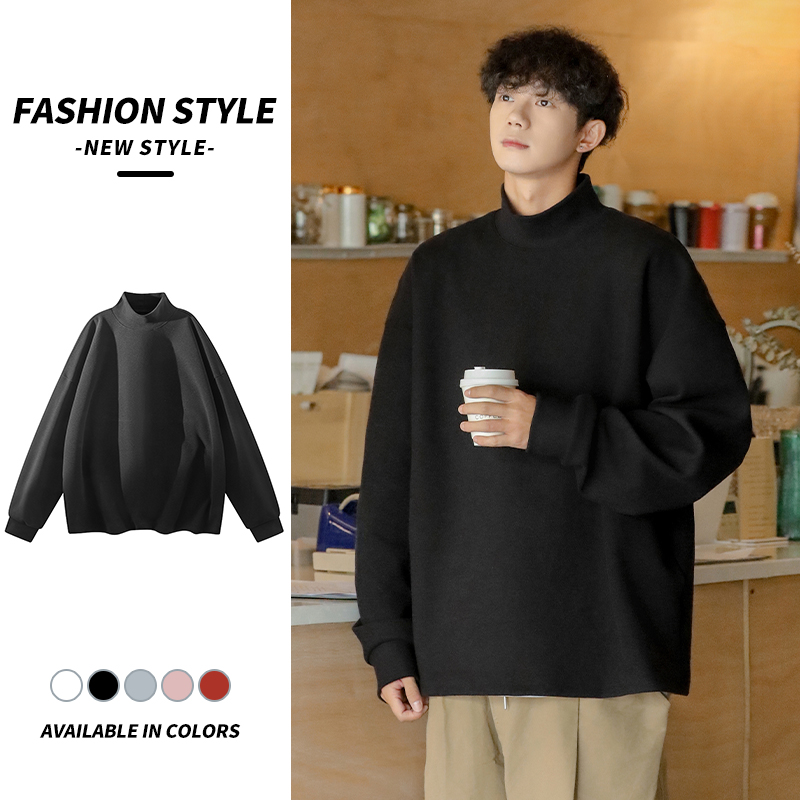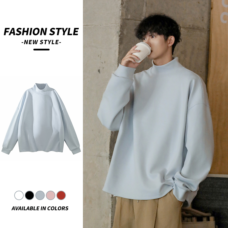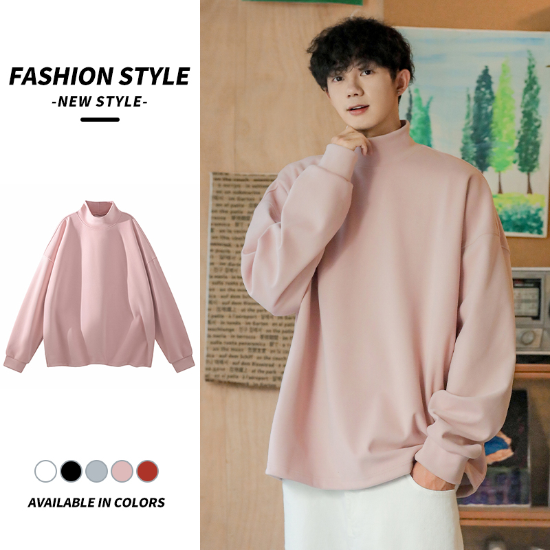 秋冬季德绒半高领打底衫男女同款上衣休闲卫衣微弹立领长袖T恤