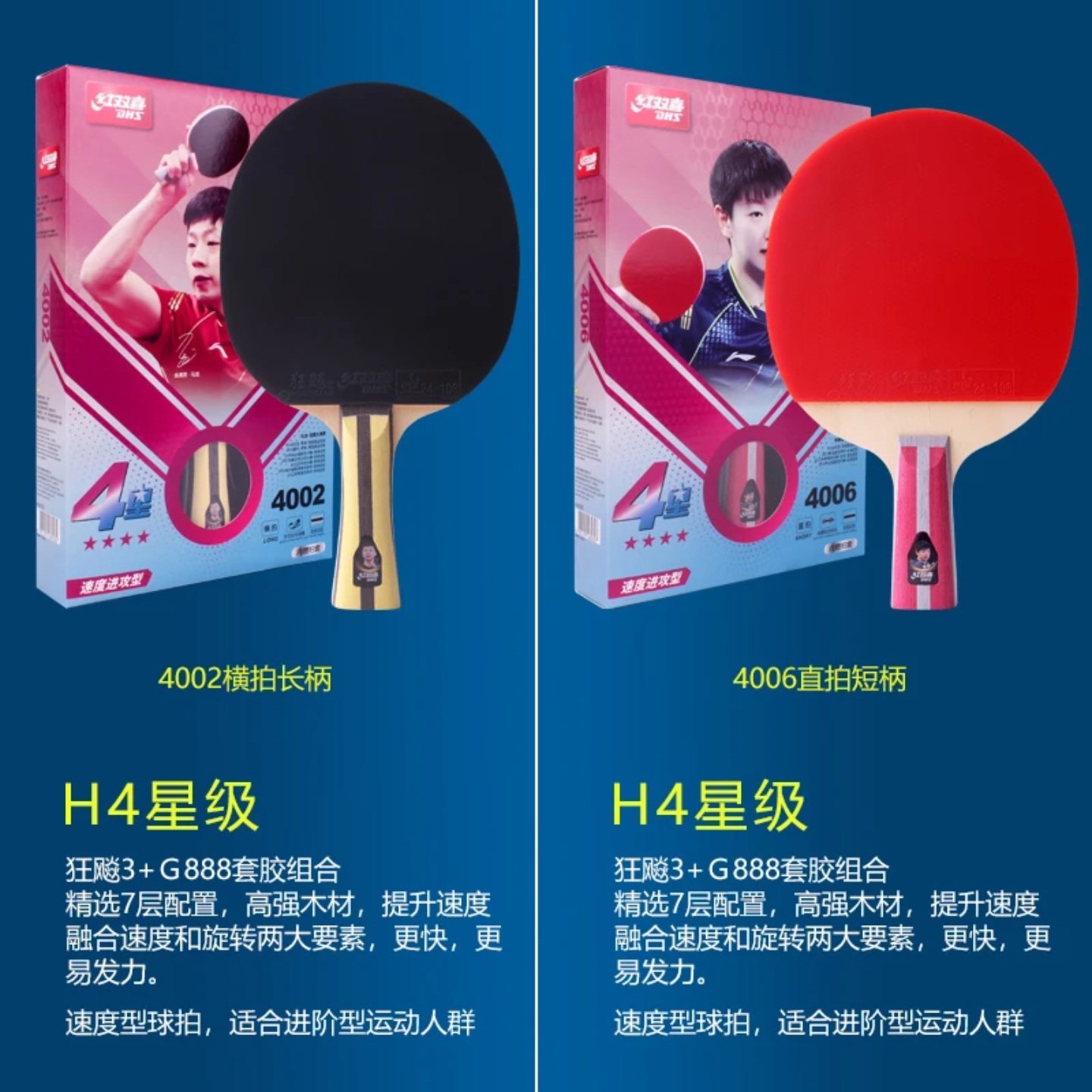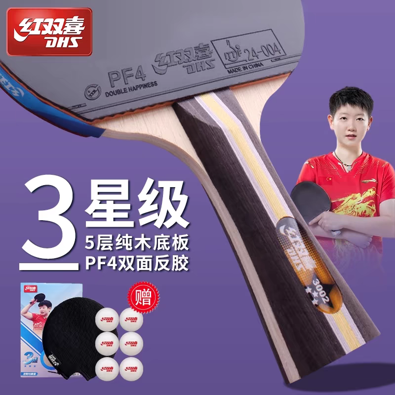红双喜乒乓球拍小学生初中专用一二3星专业狂飙三五6星级横直单拍