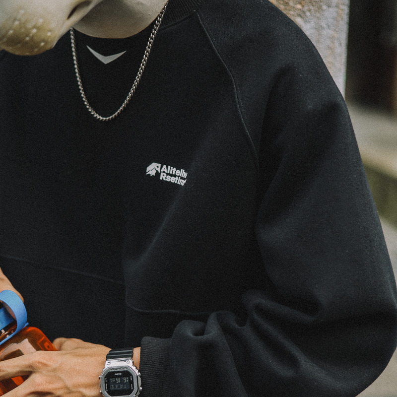 兔先森2025春秋新款城市户外运动压胶条圆领卫衣男休闲套头衫上衣