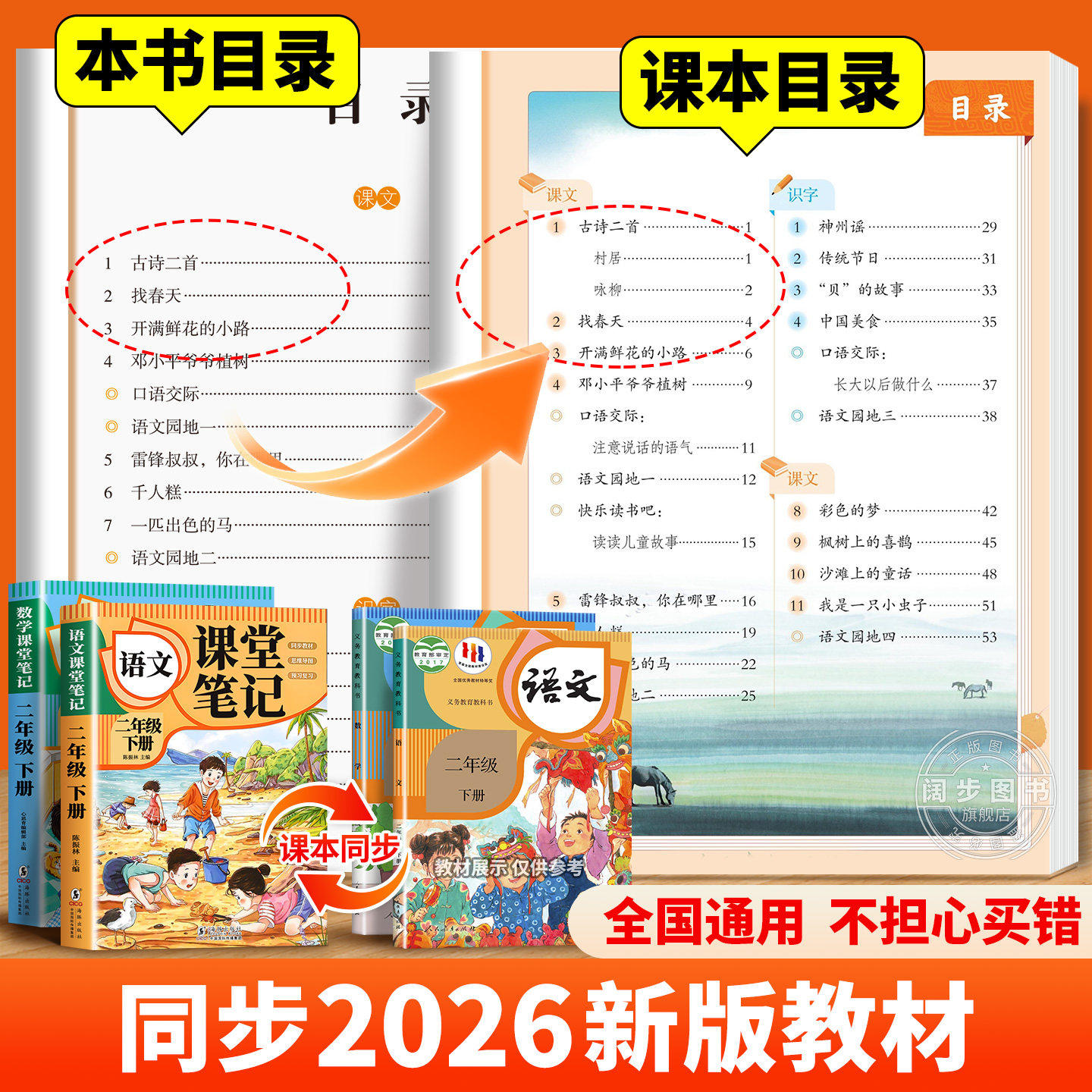 2026新版二年级下册课堂笔记人教版语文数学全套 小学教材全解解读教辅同步课本正版二下课前预习复习资料书2年级上册随堂学霸笔记
