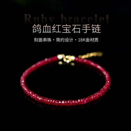 红宝石手链女18k金东海水晶玛瑙翡翠玉石散珠子项链坠鸽血红手串