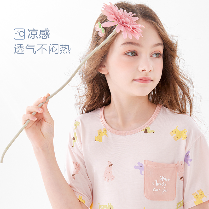 女童睡衣夏季莫代尔儿童家居服套装中大童薄款冰丝空调服短袖套装