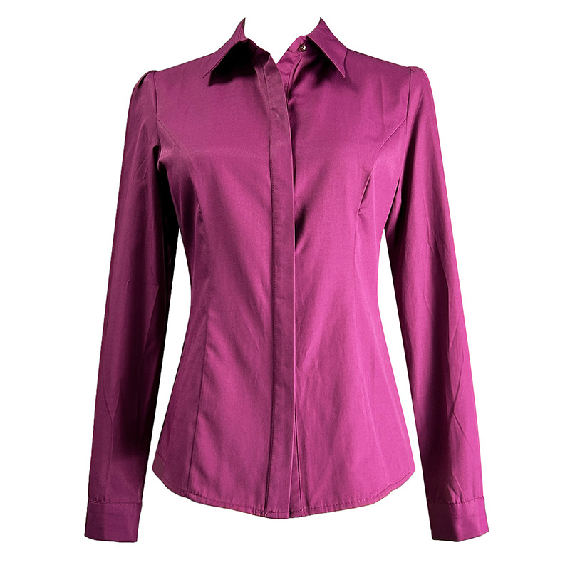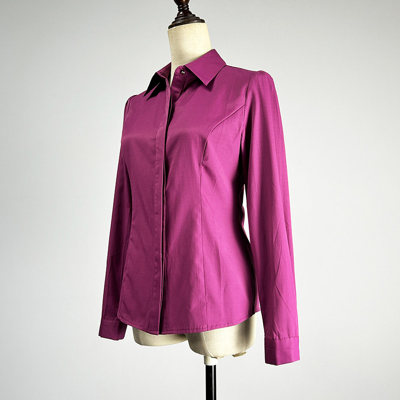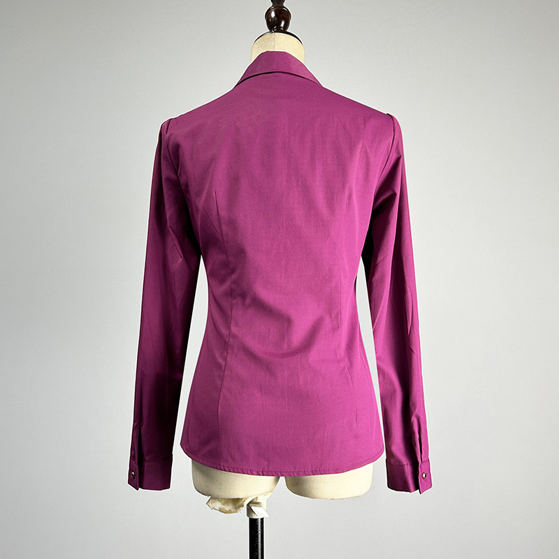 紫色长袖衬衫女2025职业装修身显瘦收腰单排扣POLO领制服衬衣