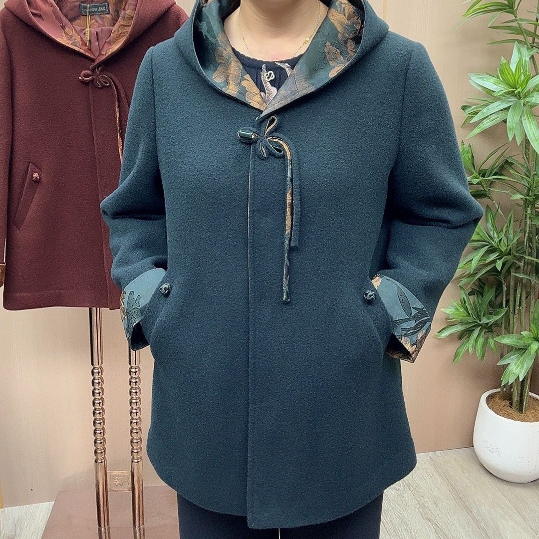 新中式妈妈秋冬装时尚外套女中老年人高贵大码中长款国风大衣