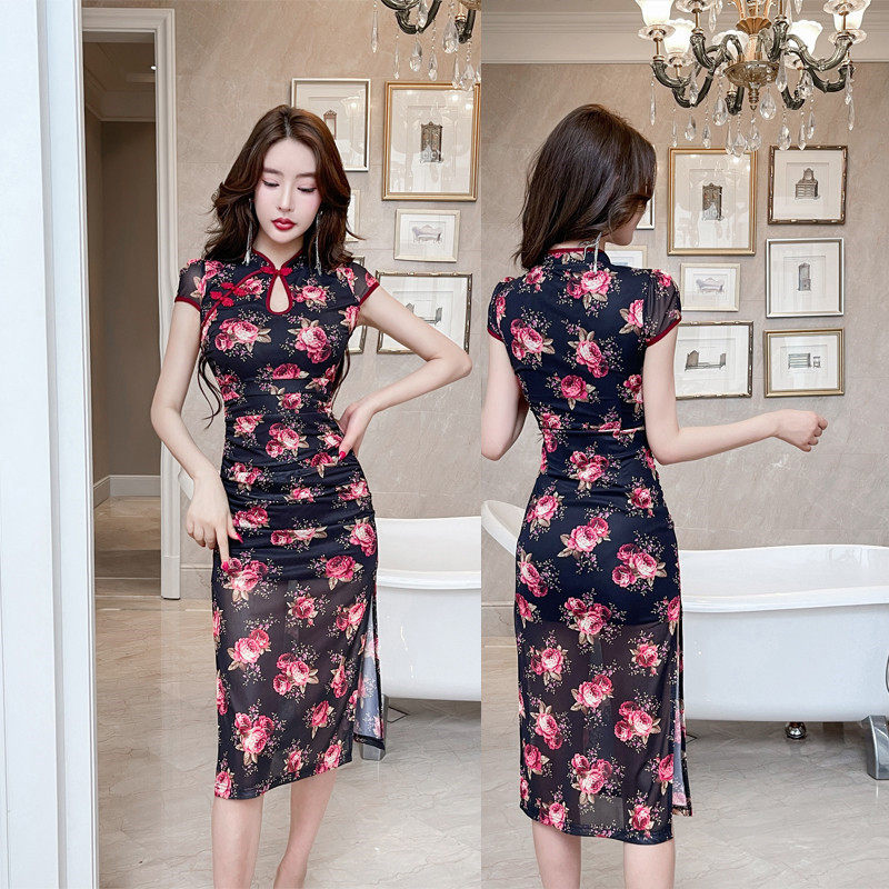 夜总店晚礼服中长款旗袍连衣裙