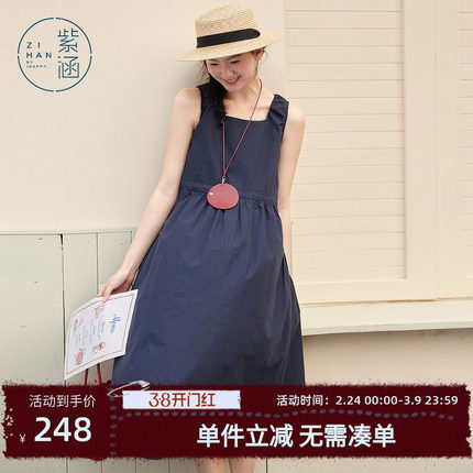 紫涵法式藏青色背心连衣裙女夏季新款法式气质简约牛筋收腰a字裙
