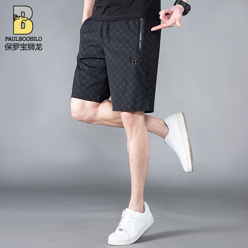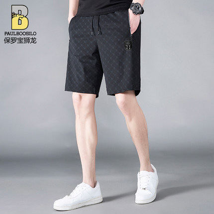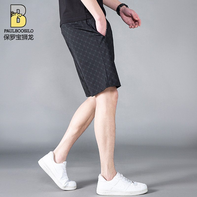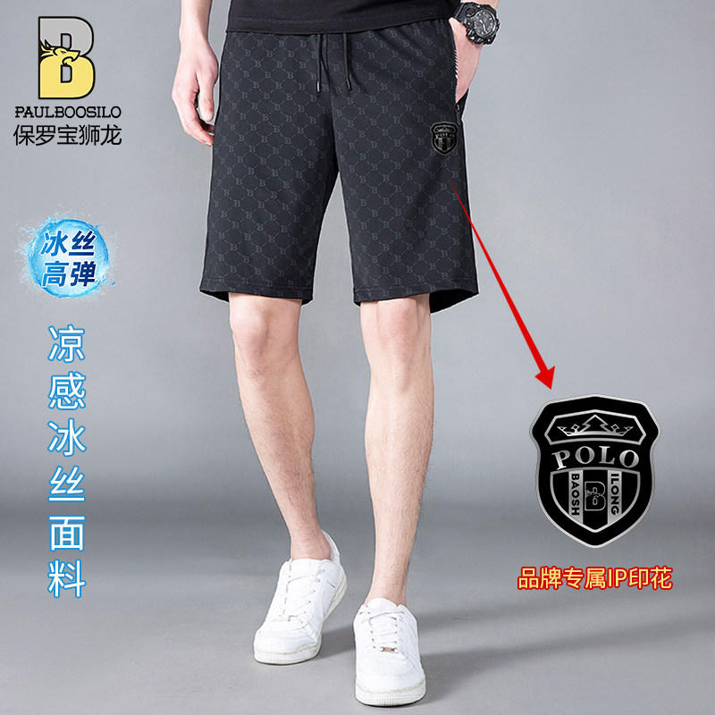 保罗堡狮龙夏季男士冰丝休闲裤子新款外穿大裤衩薄款冰丝运动短裤