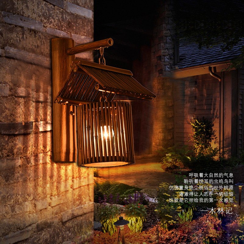 中式仿古复古竹艺马灯民宿客栈壁灯个性灯具卧室床头灯创意酒吧灯