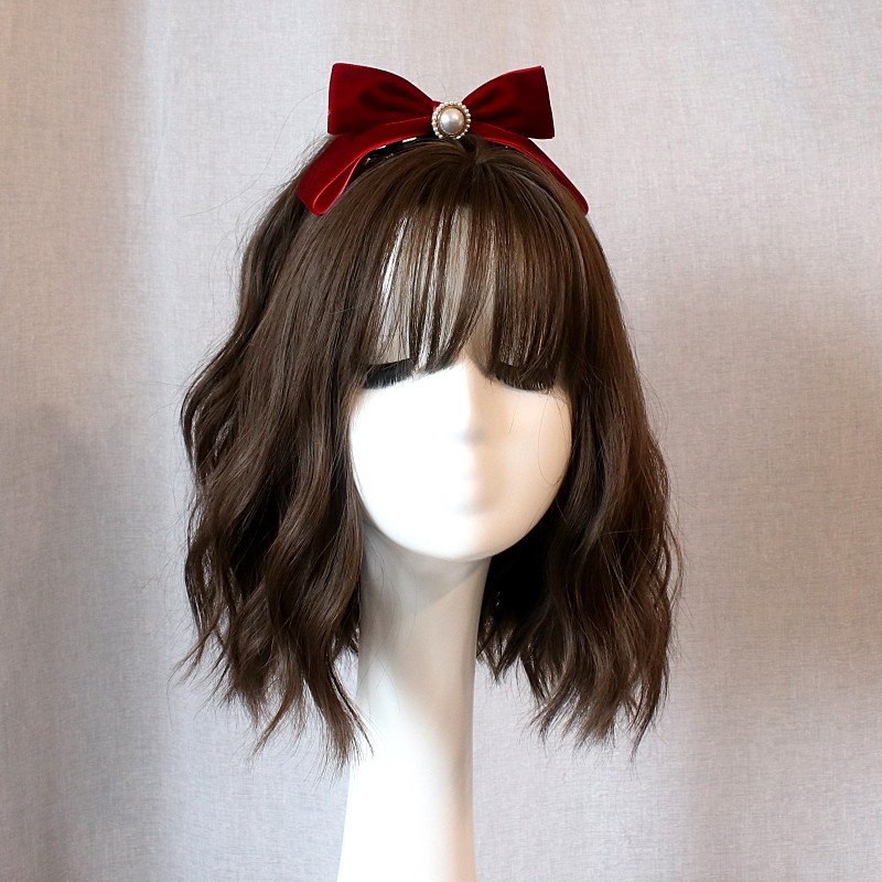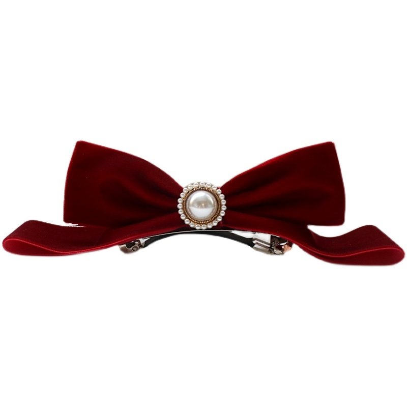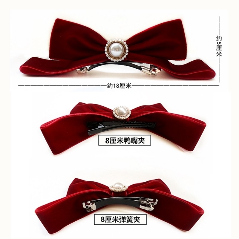 迪士尼在逃公主珍珠蝴蝶结头饰发夹红丝绒后脑勺顶夹新娘新年发饰