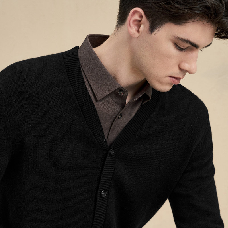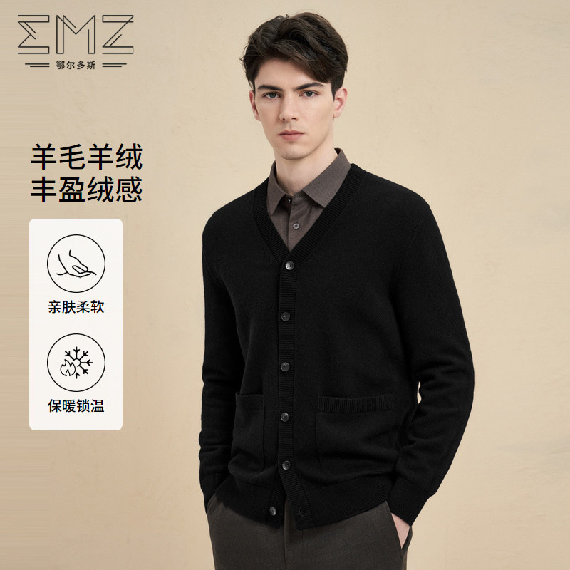 【羊毛羊绒】emz鄂尔多斯秋冬简约V领商务休闲针织开衫毛衣外套男