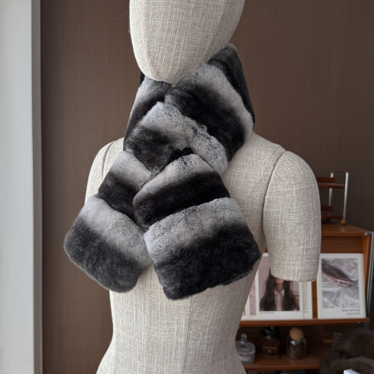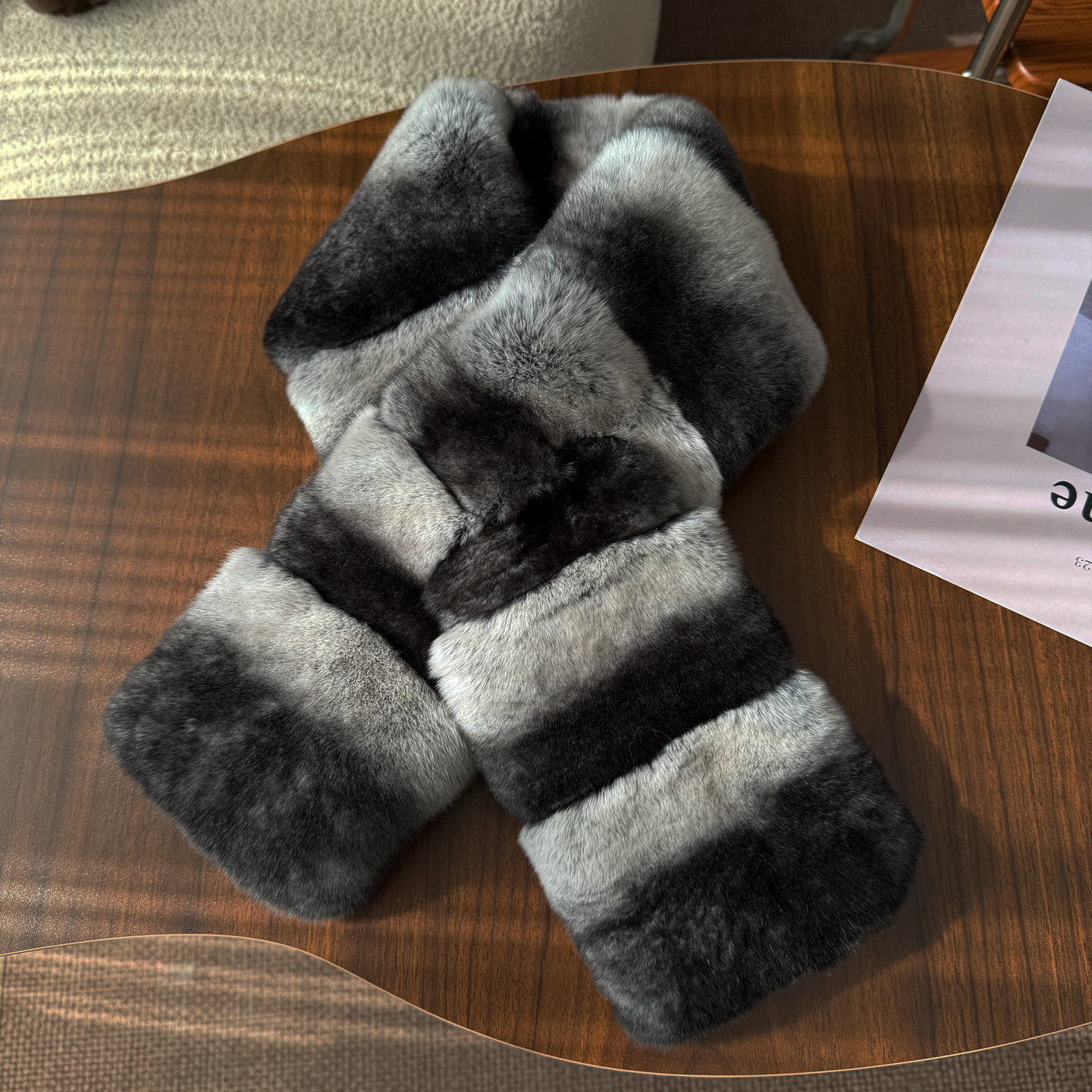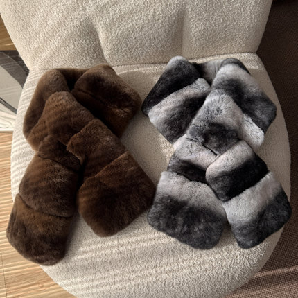 龙猫皮草围巾双面獭兔毛围脖女冬季保暖百搭交叉式围巾