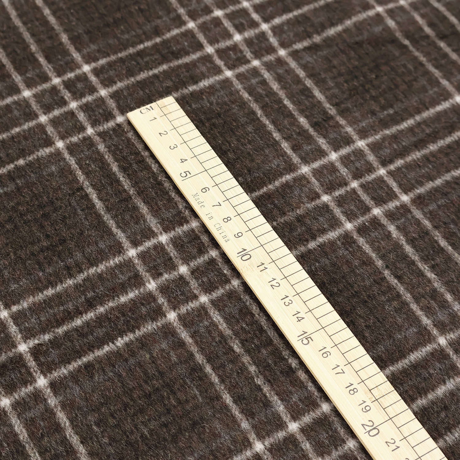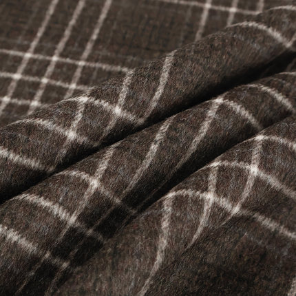 英伦光泽巧克力咖啡色顺毛毛料格子羊毛呢羊绒布料秋冬服装面料B