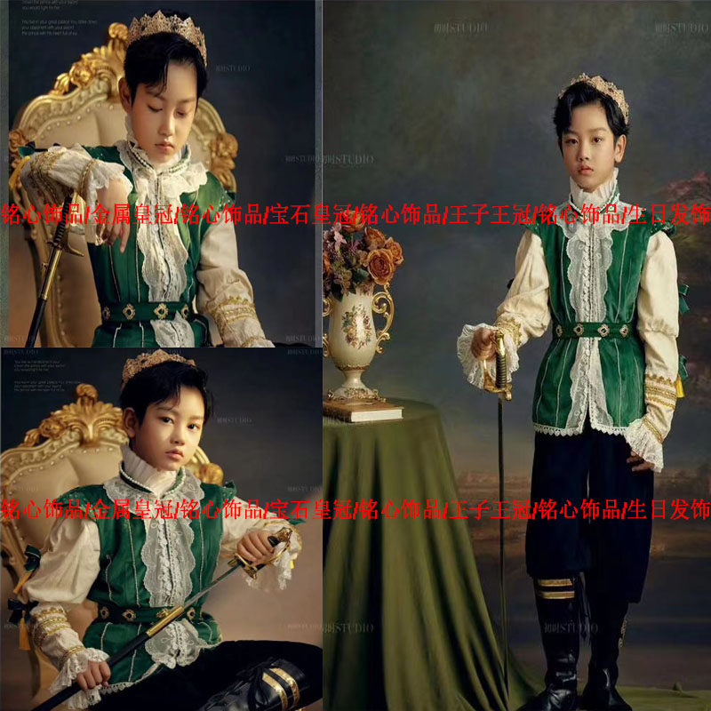法式绅士生日皇冠男头饰儿童王冠国王选美女王圆冠演出道具生日礼