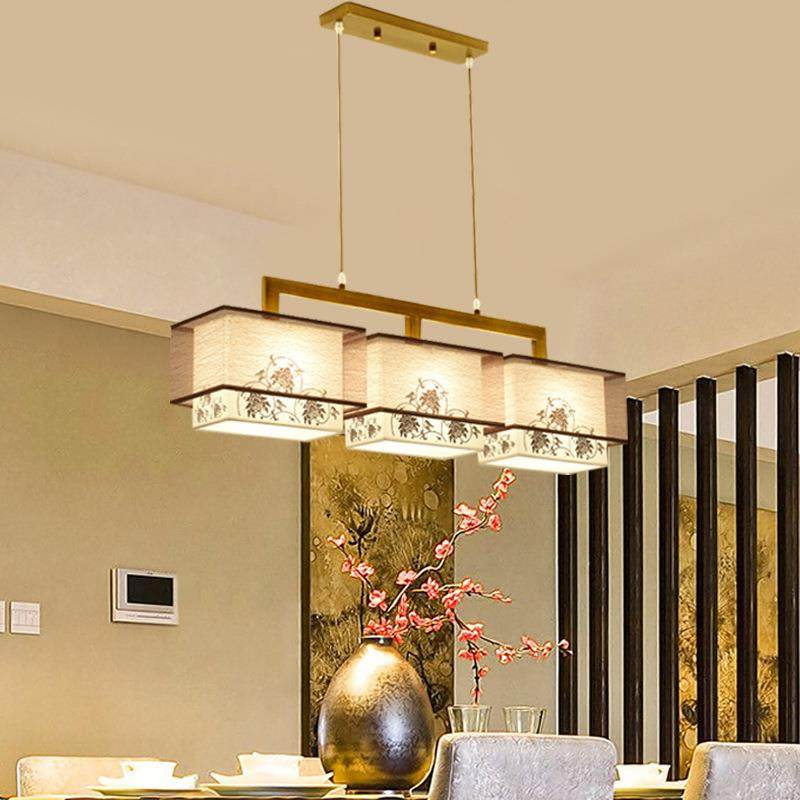 新中式现代简约长方形餐厅吊灯三头客厅灯创意个性饭厅大气餐厅灯