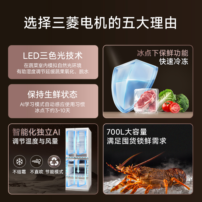 三菱MR-WXD70M日本直邮进口 家用多开门700L大容量 储鲜保鲜冰箱