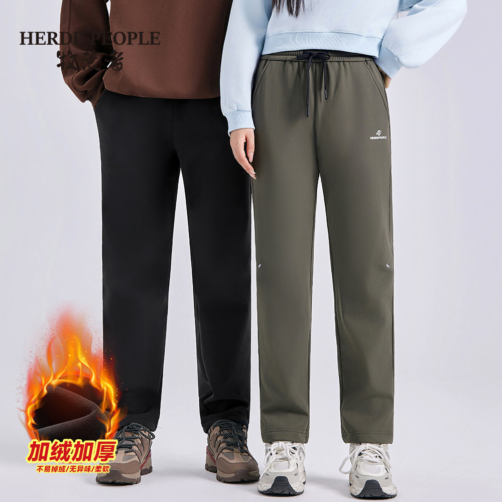 牧荒者冬季加绒情侣男女同款休闲裤户外运动保暖百搭防寒直筒长裤