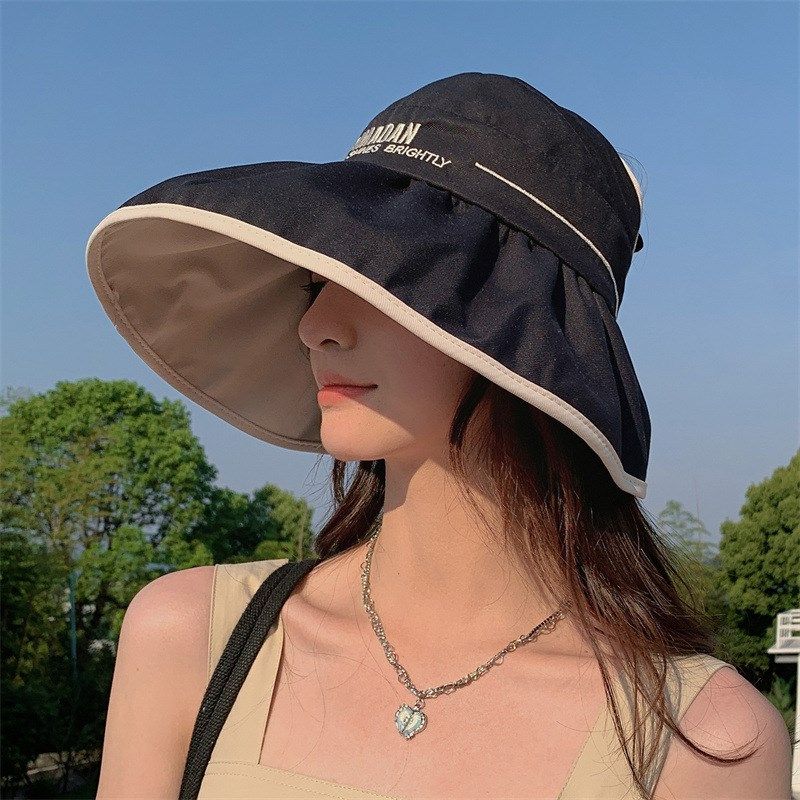 2023太阳帽子女时尚双面空顶帽女士夏季遮阳帽防紫外线防晒帽沙滩