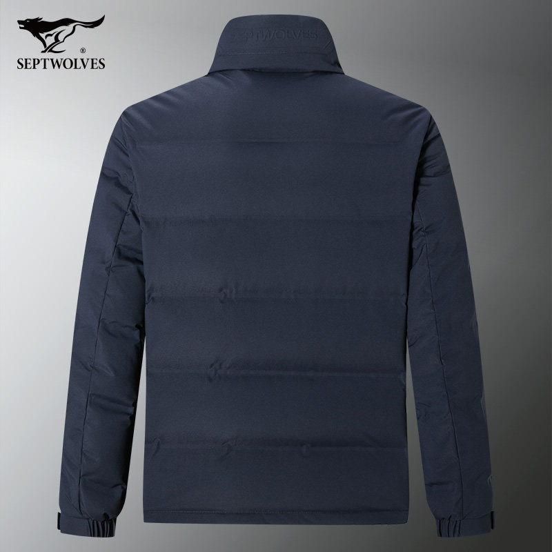 七匹狼羽绒服男狼族生活立领横向字母凸起通道加绒加厚保暖外套衫
