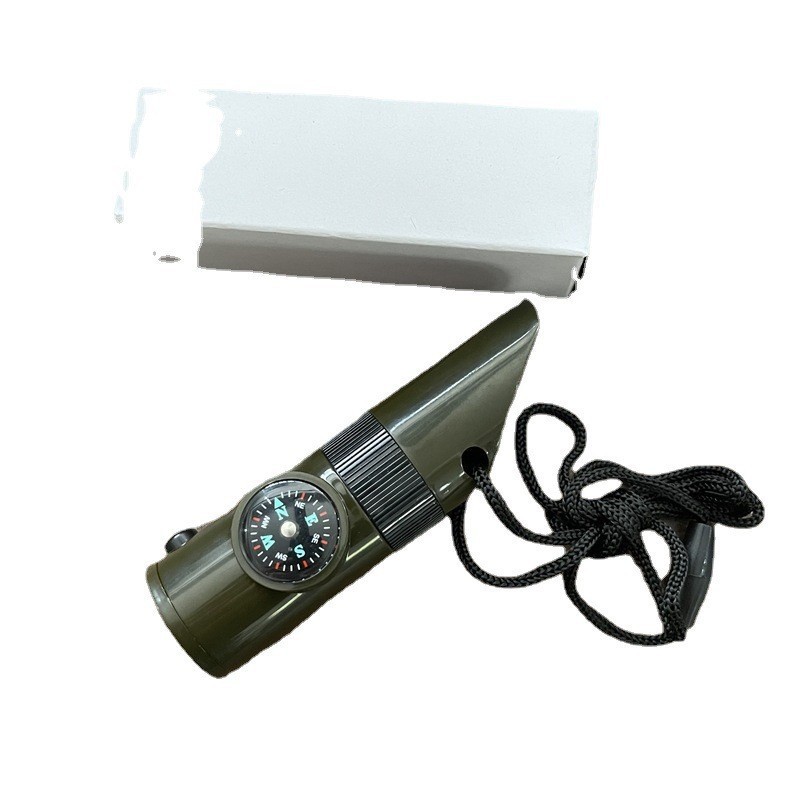七合一口哨7合1求生哨救生哨子带LED灯温度计指南针野营多功能
