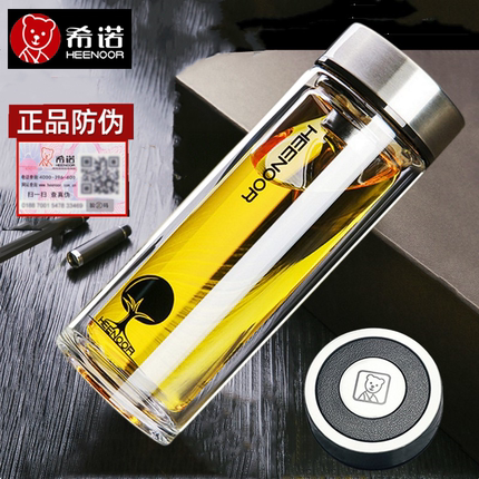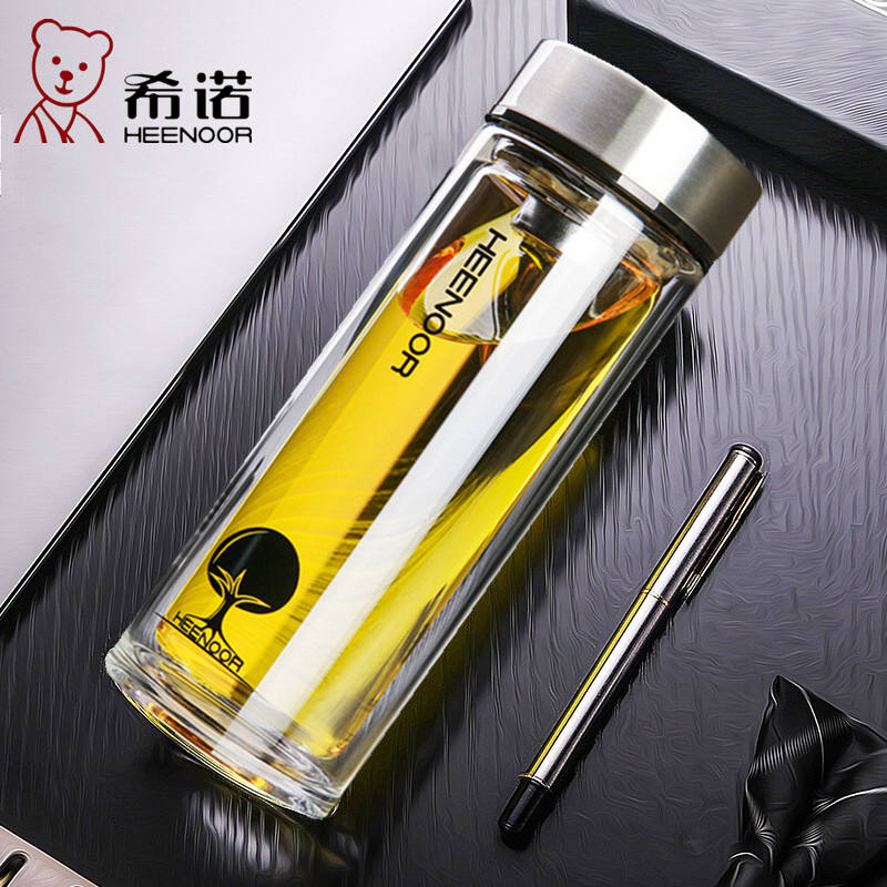 希诺玻璃杯双层男女高颜值可刻字泡茶杯子隔热高档水杯定制印logo