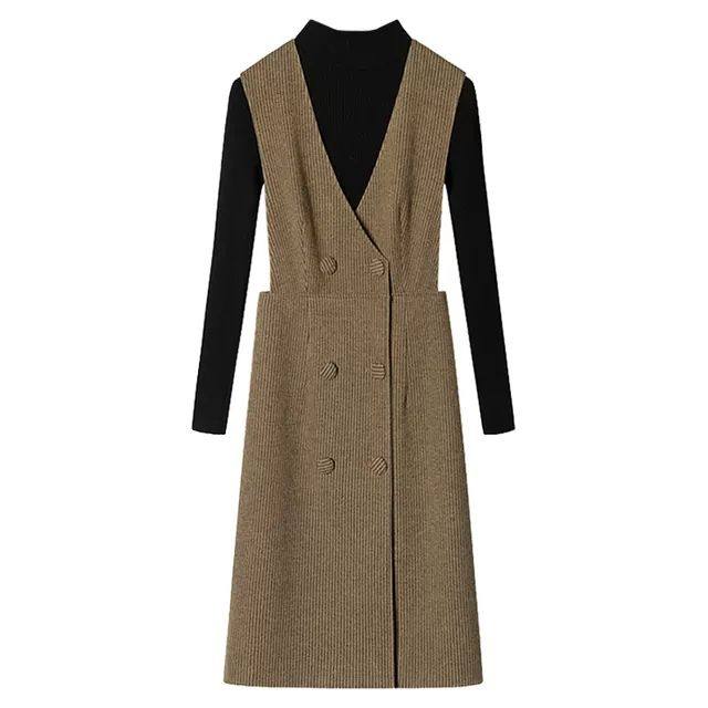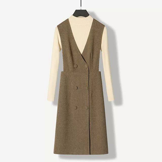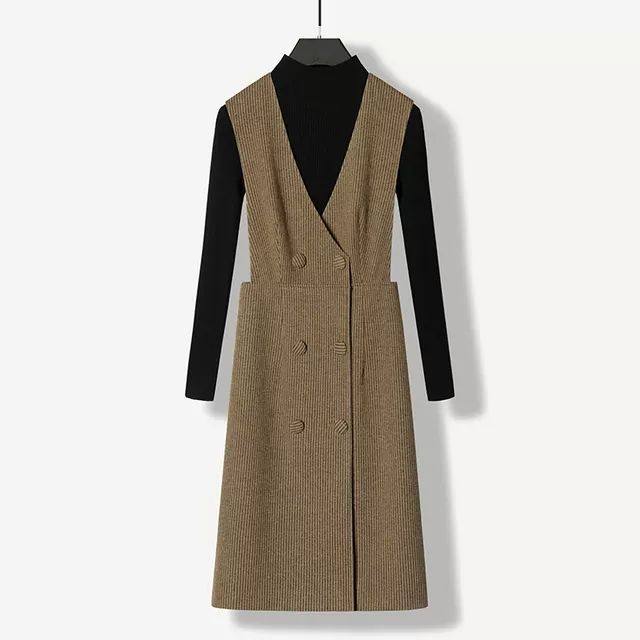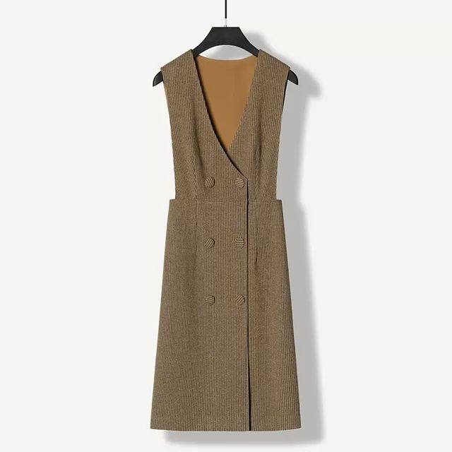 法式复古毛呢背心连衣裙女2025春秋马甲背背带连衣裙无袖OL马甲裙