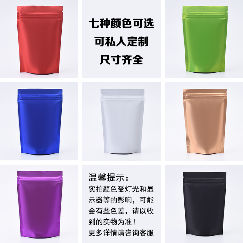 彩色镀铝哑光铝箔自立袋磨砂包装袋自封袋茶叶零食封口袋密封定制