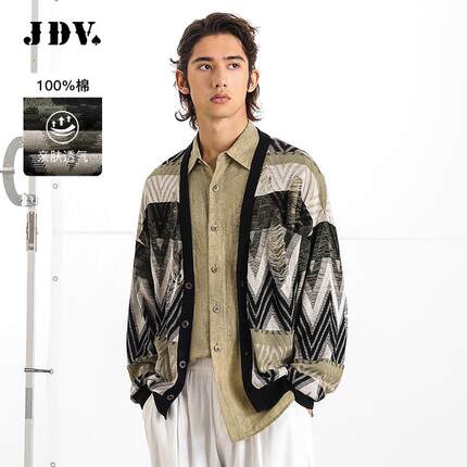 JDV男装2025商场同款春秋新款男士绿色纯棉针织开衫毛衫