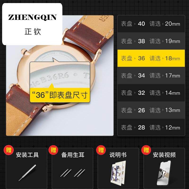 适用维途手表带真皮表带平纹油蜡皮男女手表链代用阿玛尼DW依波天