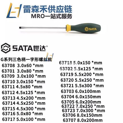 SATA世达63708 63701 63709 63710 G系列三色柄一字形螺丝批 正品
