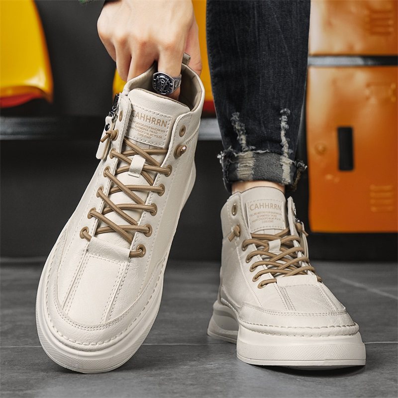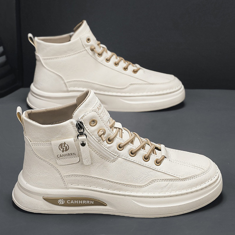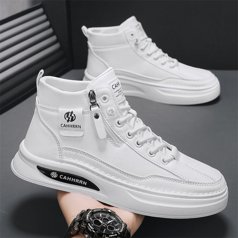 高帮男鞋冬季2025新款潮流百搭运动休闲皮鞋厚底防水工作小白板鞋