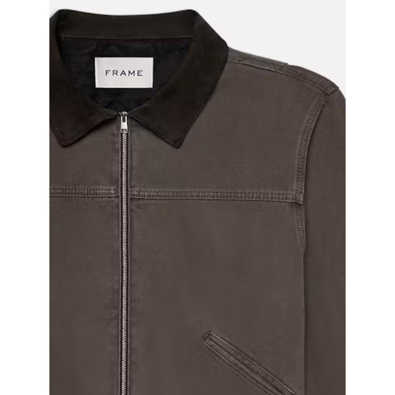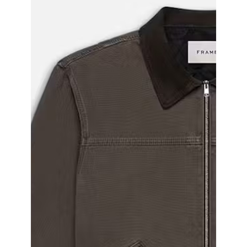 FRAME男士军绿色工装拉链翻领夹克短款外套