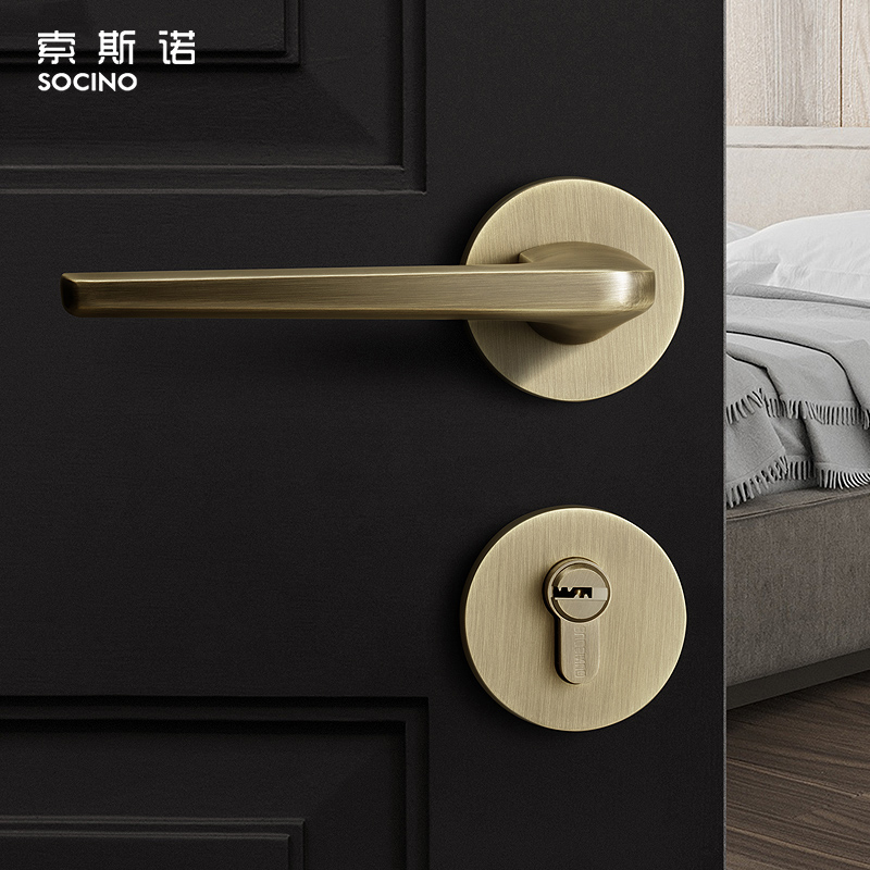 索斯诺室内门锁家用美式青古铜门锁简约现代北欧卧室房磁吸门锁