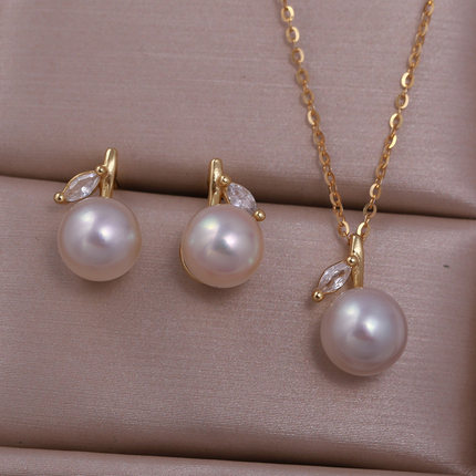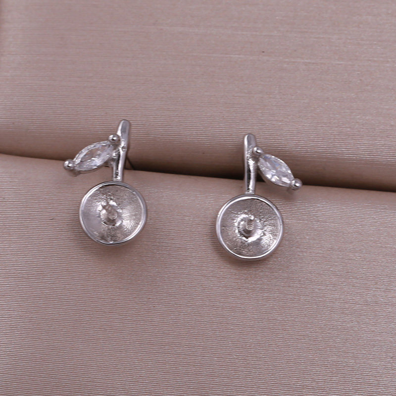s925纯银耳钉项坠两件套配件 diy手工制作珍珠吊坠不含链苹果配件