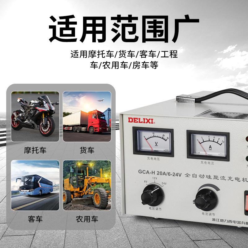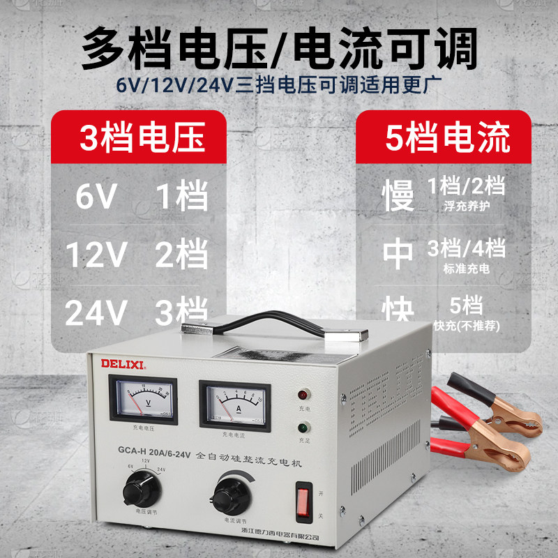 德力西汽车电瓶充电器 蓄电池直流充电机GCA-H20A 6V 12V 24V