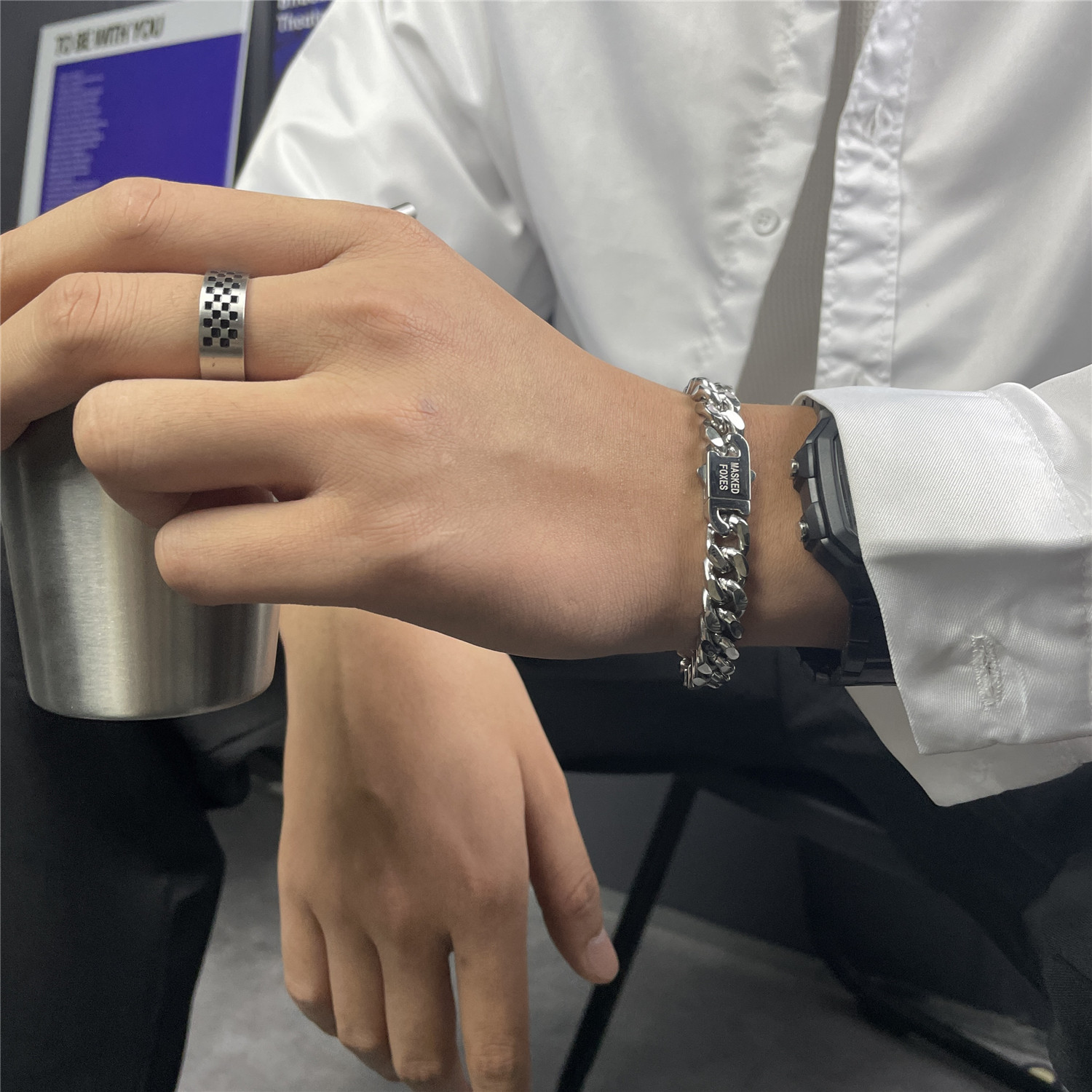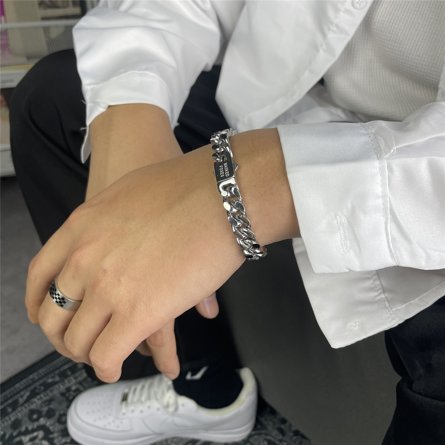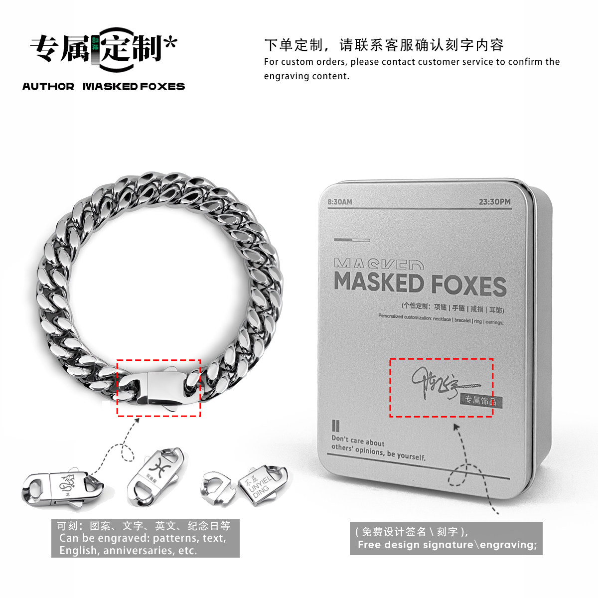 MASKED FOXES精工抛光钛钢古巴手链男生个性潮人高级感光面手饰酷