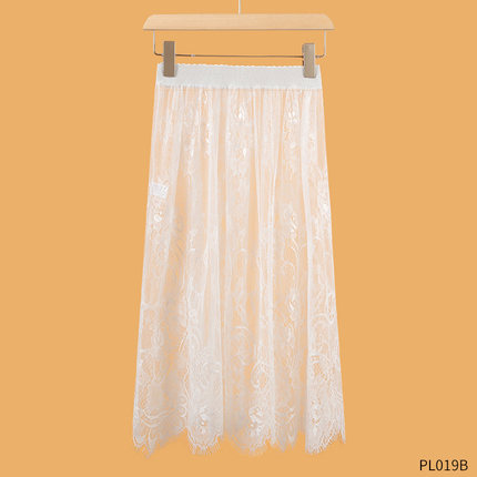 蕾丝衬裙镂空半身裙内搭休闲打底裙网纱中长款半身裙防透内衬裙女