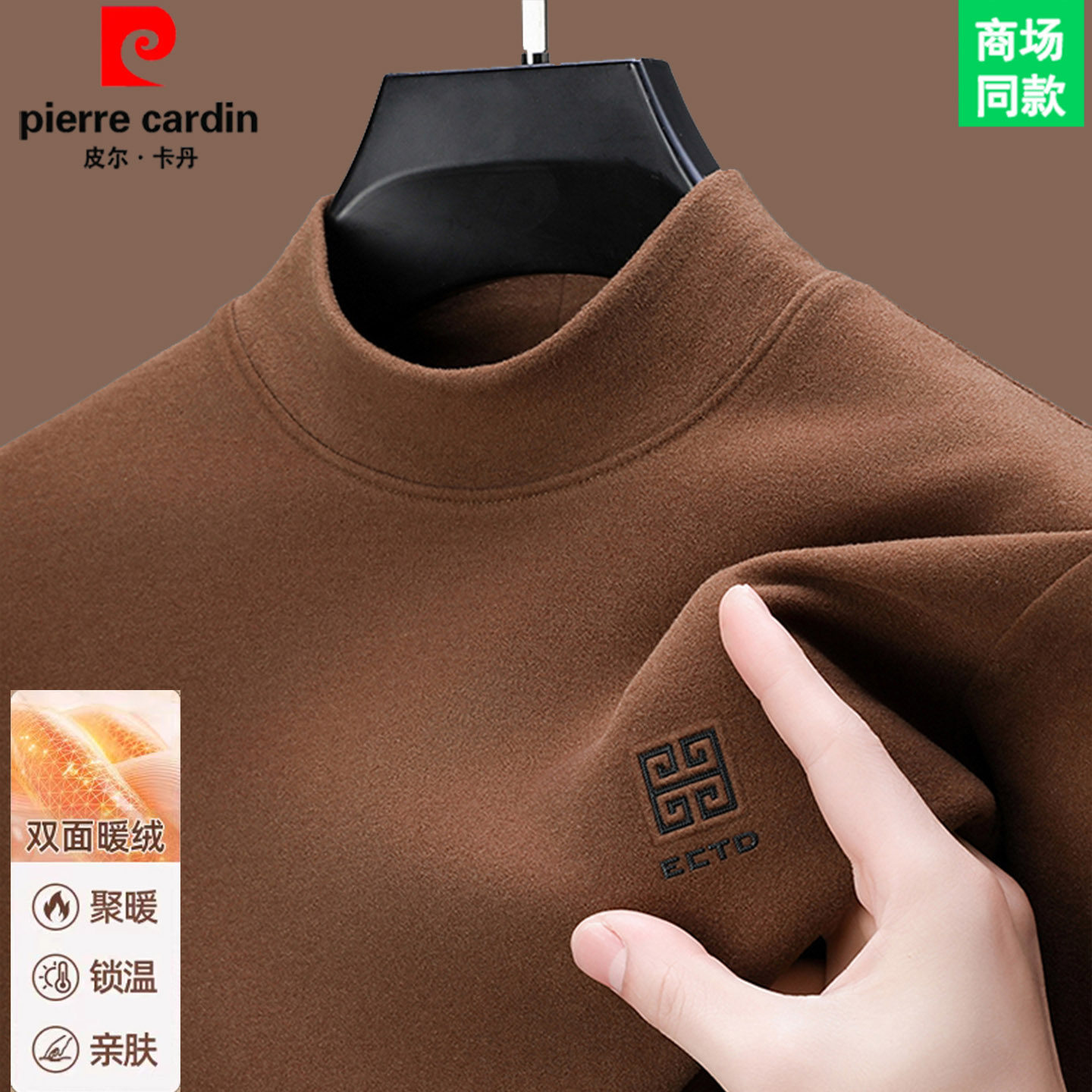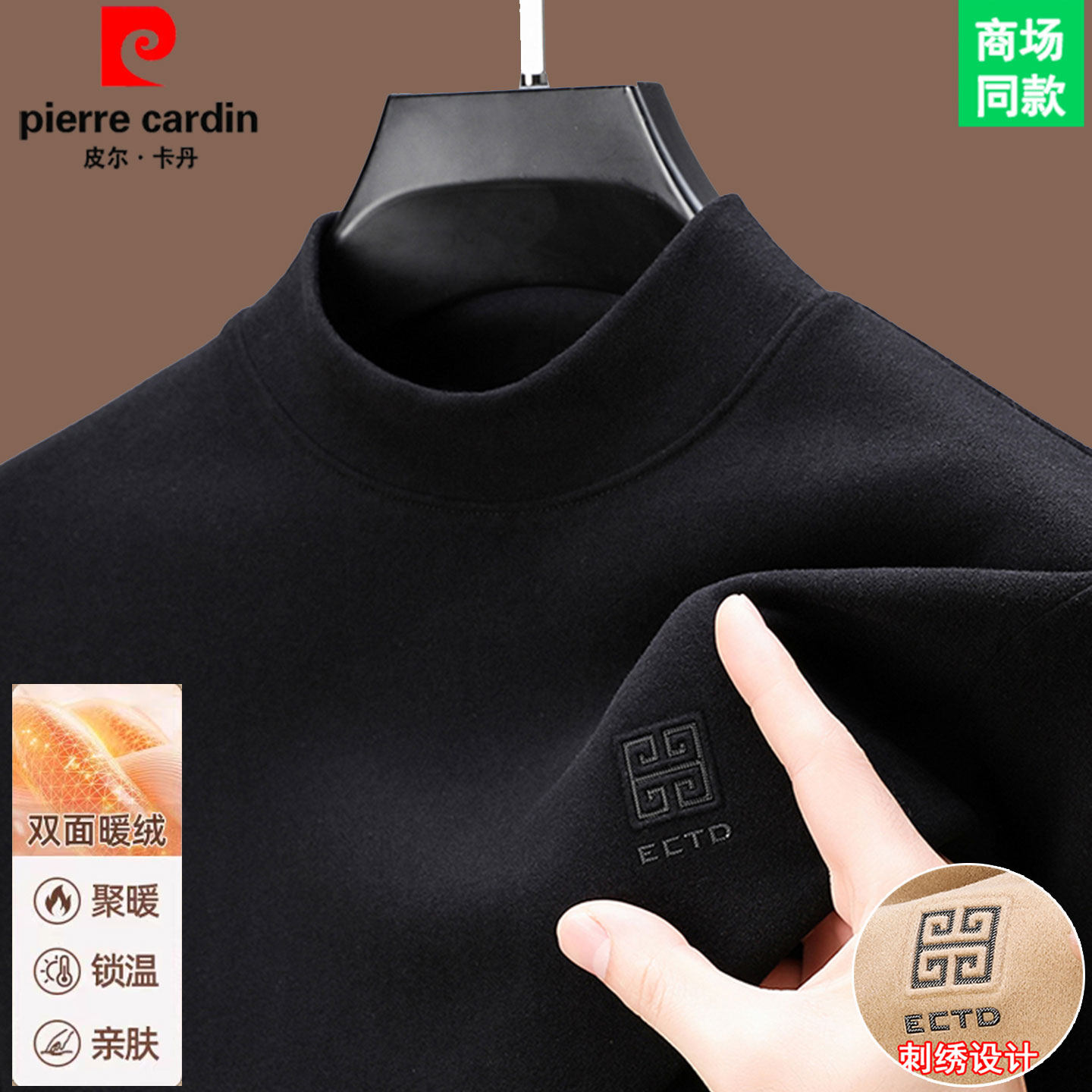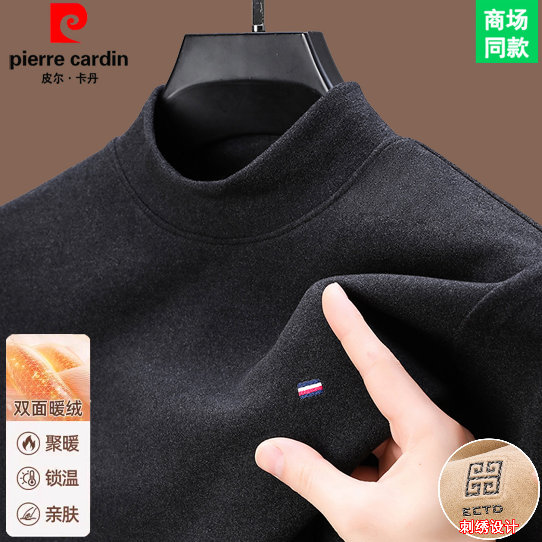 皮尔卡丹高端双面德绒男士半高领保暖打底衫秋冬抗寒长袖卫衣t恤