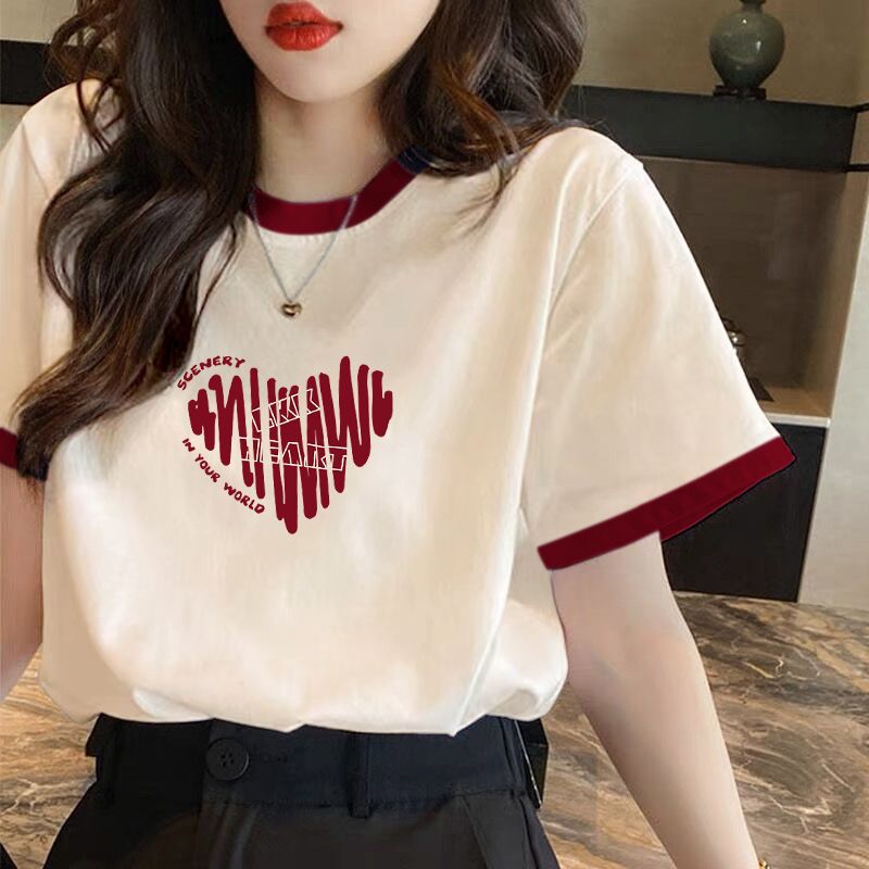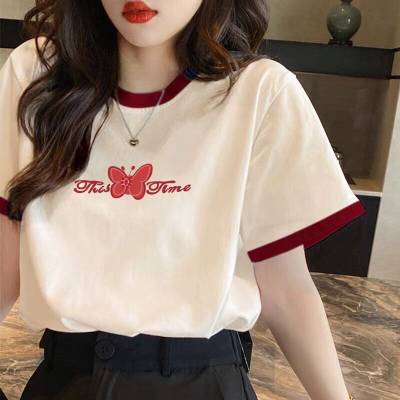 夏季新款纯棉短袖t恤女拼色宽松半袖体恤学生大码胖mm遮肚上衣服