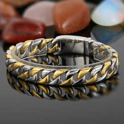 高档古巴手链男款环环相扣钛钢不掉色手环百搭潮个性男士嘻哈手饰