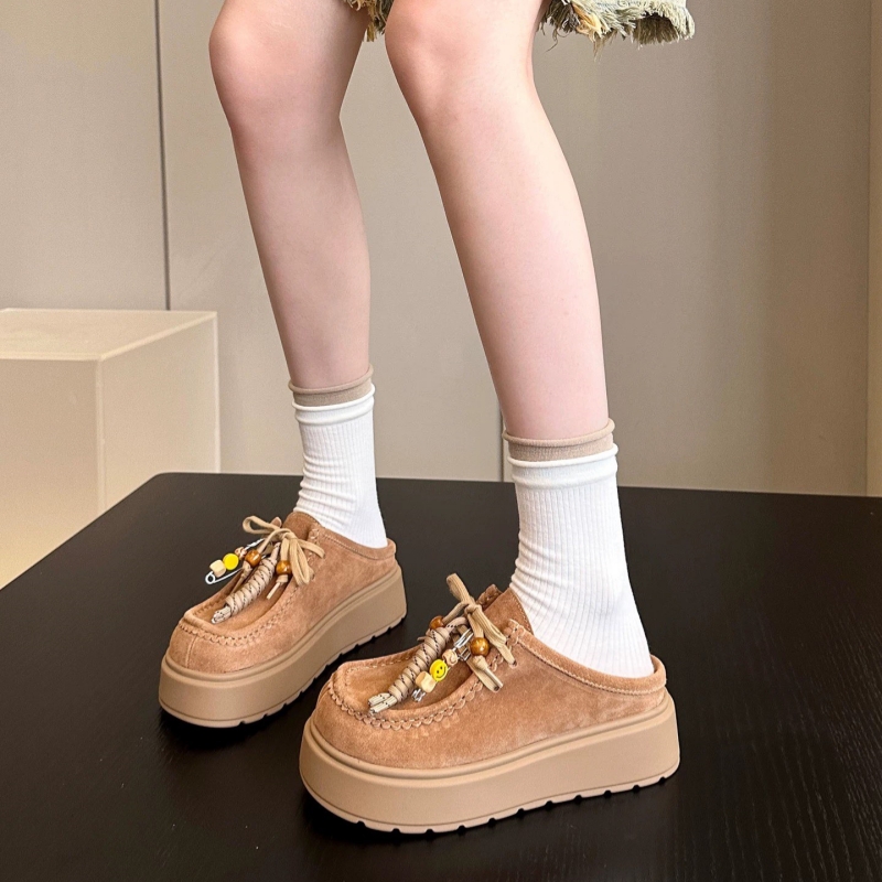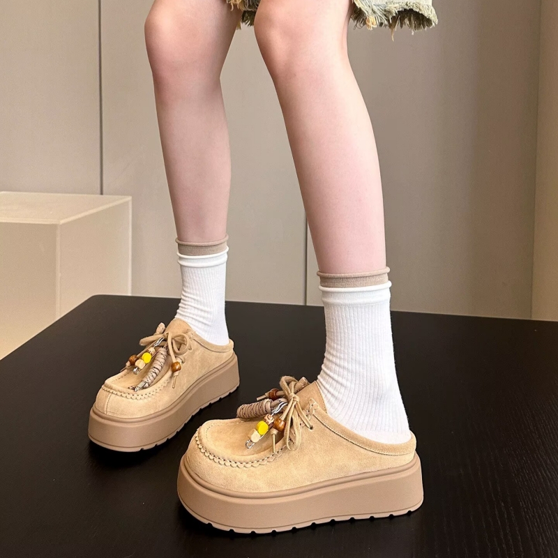 真皮!专柜商场撤柜断码圆头系带厚底增高勃肯鞋包头半拖鞋女257