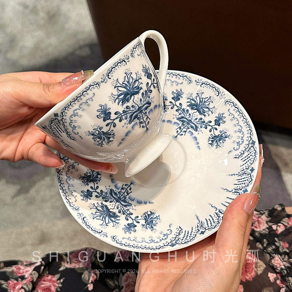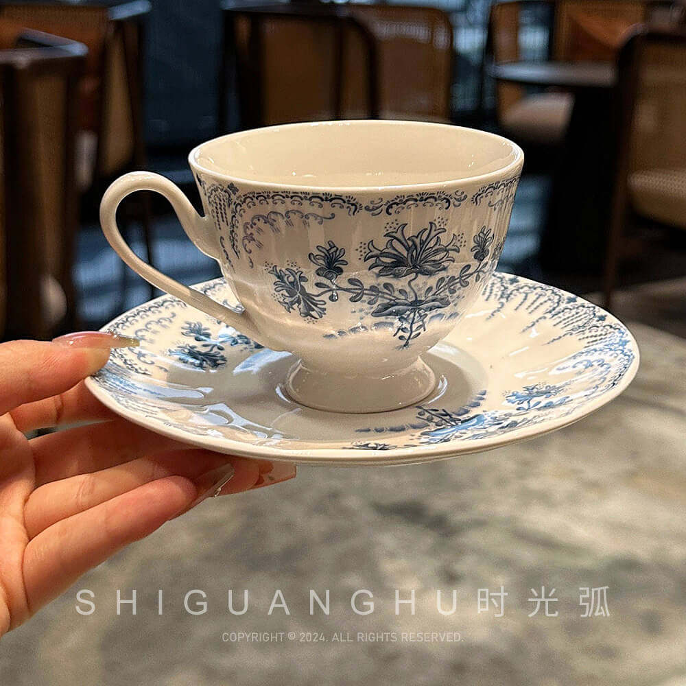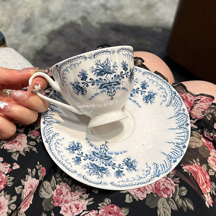 *老板娘自用轻奢*法式复古盘子咖啡杯碟蓝白碎花中古经典陶瓷摄政