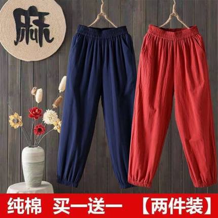 单/两件 纯色灯笼裤宽松大码高腰束脚九分裤夏季休闲棉麻哈伦裤女