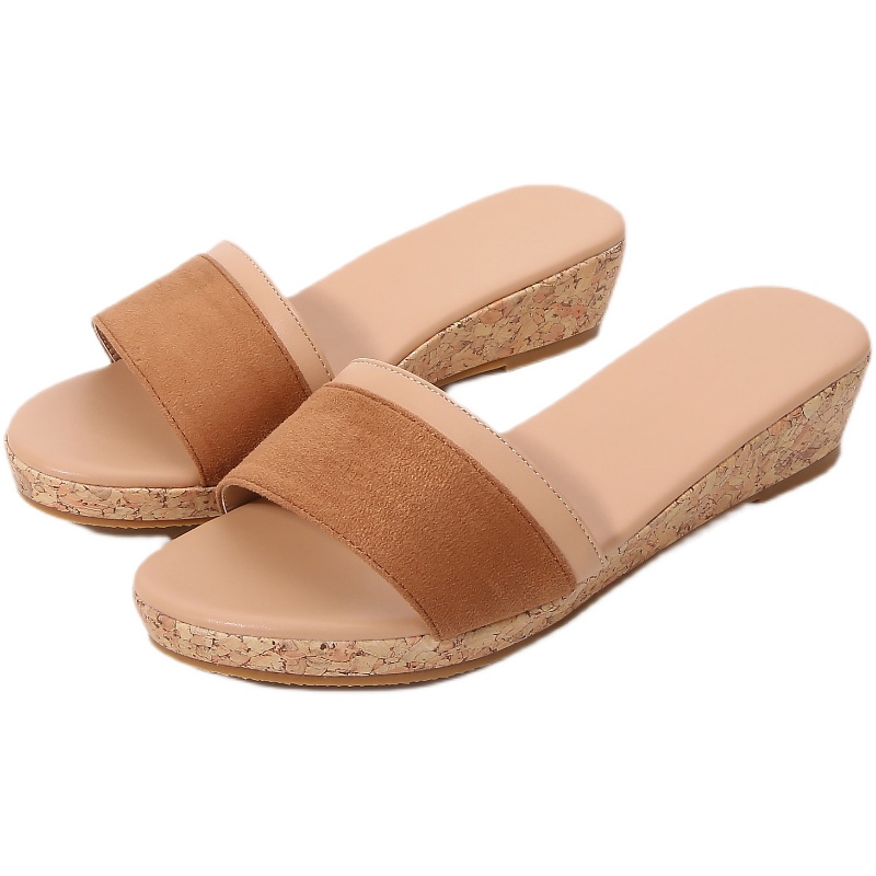 夏季新款矮跟坡跟拼接拖鞋女一字带凉拖鞋平底厚底防水台沙滩鞋