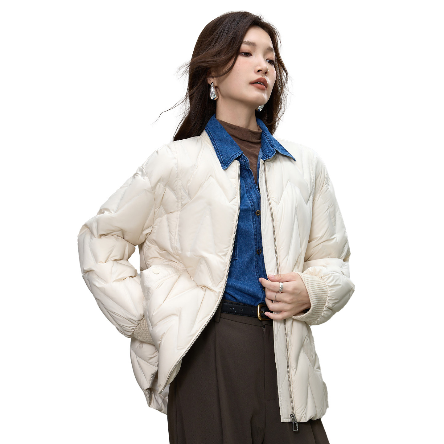 Smen诗萌立领轻薄短款羽绒服