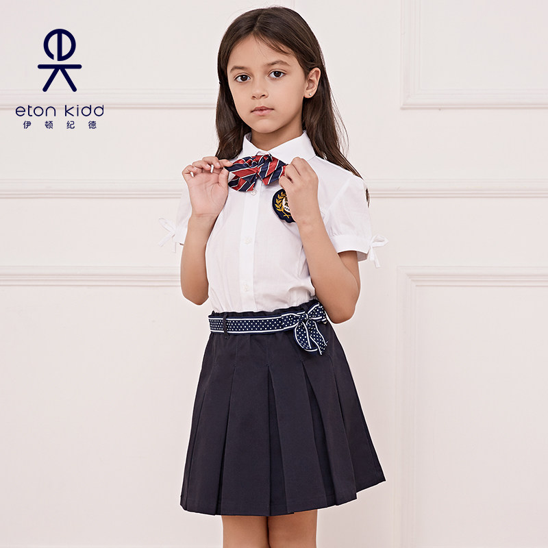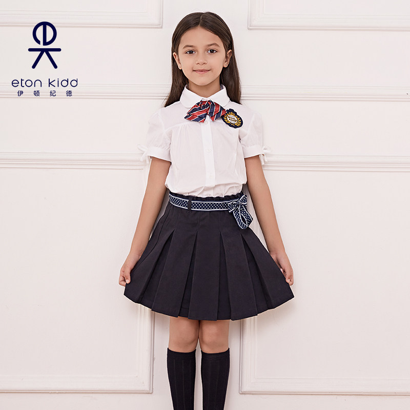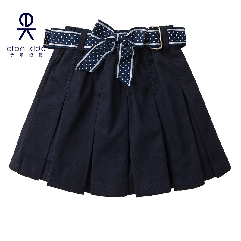 伊顿纪德校服学院蝴蝶结织带淑女百褶裙藏青半身裙女童裙子10Q252