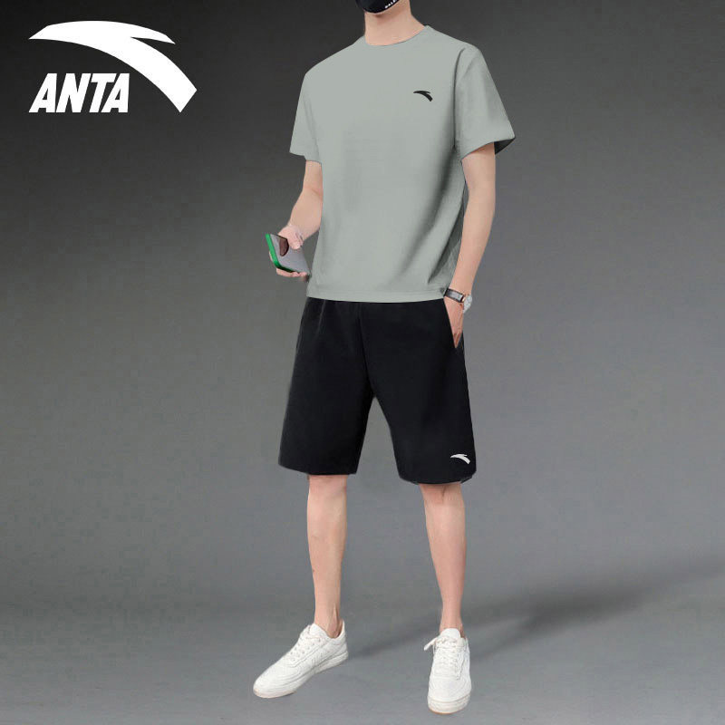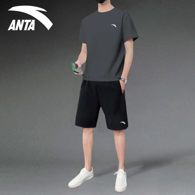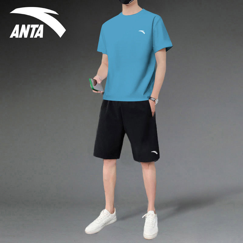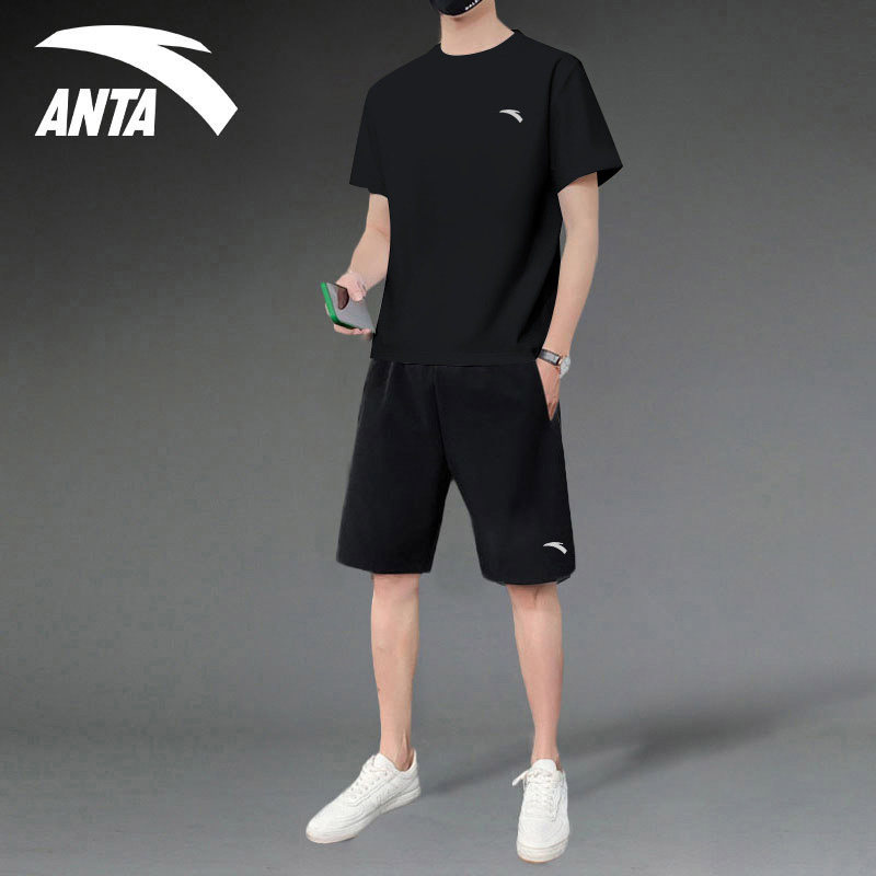 安踏运动服套装男士夏季短袖短裤两件套休闲跑步健身冰丝速干衣服