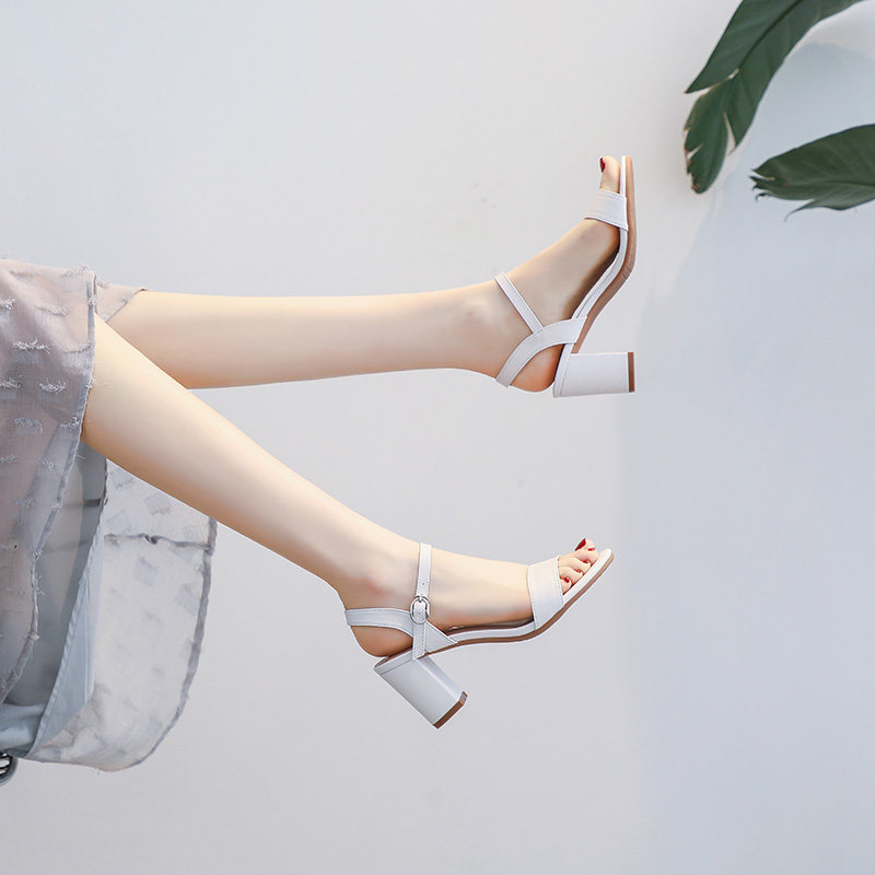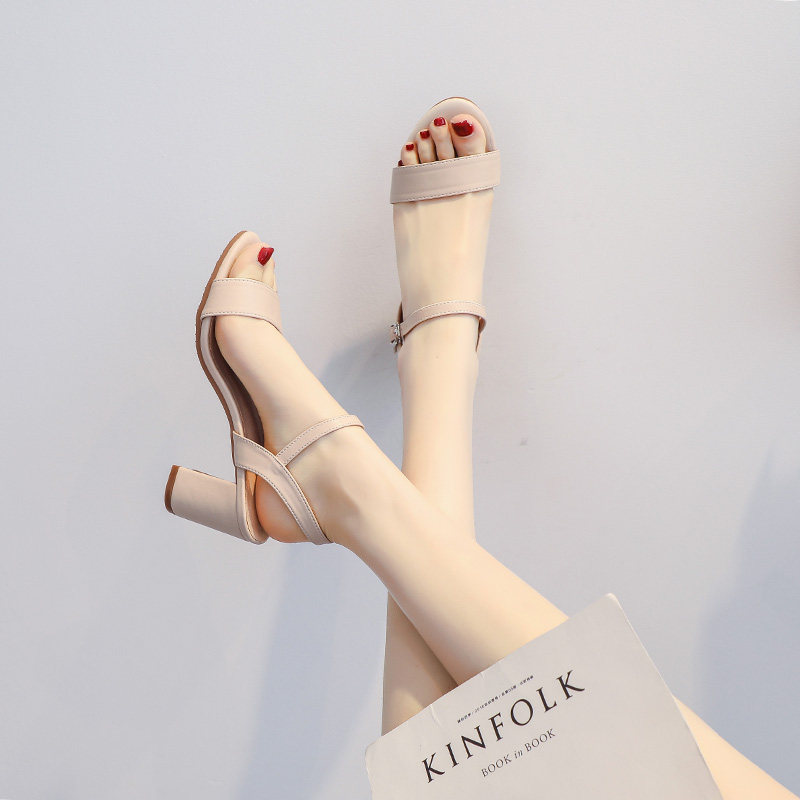 可芙妮高跟凉鞋女夏季2026年新款真皮女鞋中跟粗跟仙女风一字扣带