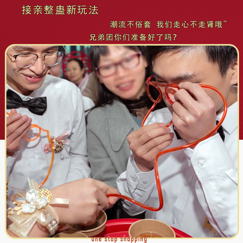 结婚堵门整蛊新郎伴郎团搞笑胡子吸管眼镜喝饮料创意接亲游戏道具