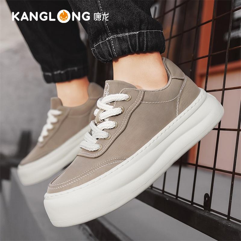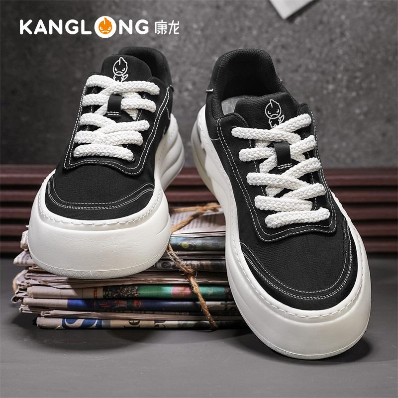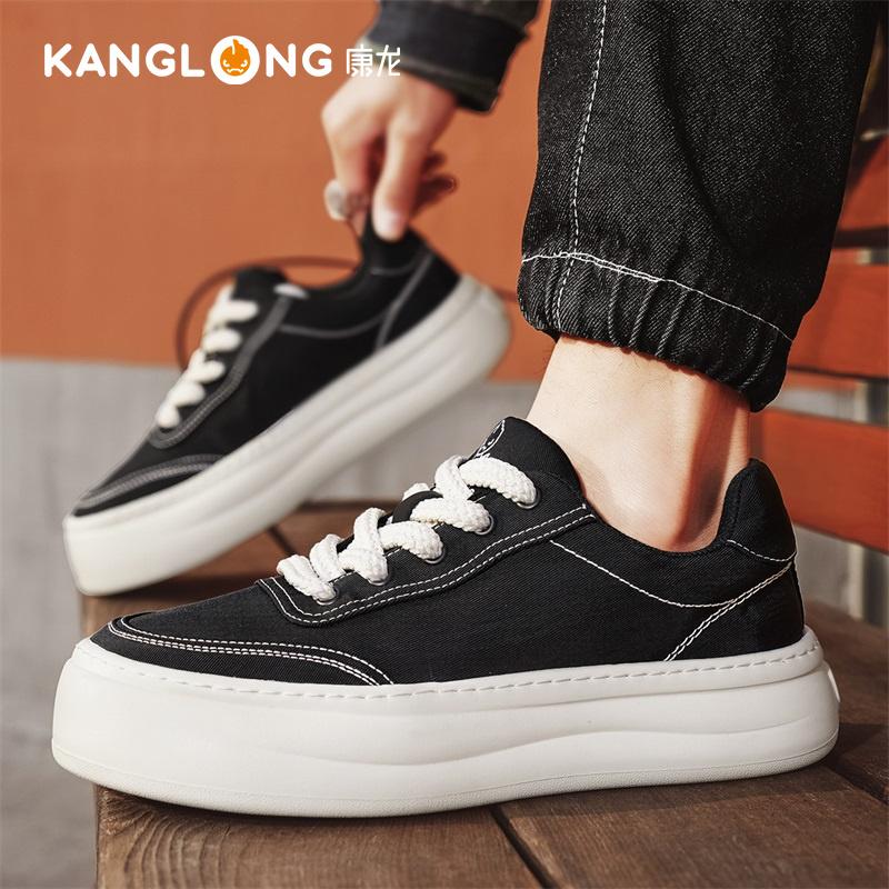 康龙鞋子男鞋2025春秋新款百搭黑色厚底增高潮流软底男士休闲板鞋